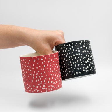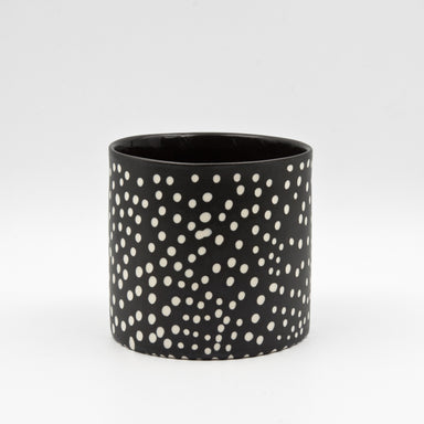 View full detailsIn Polka dot series, white dots are scattered over a dark background. Each pattern is made by hand and unique. Slip cast porcelain. Inner side i...
